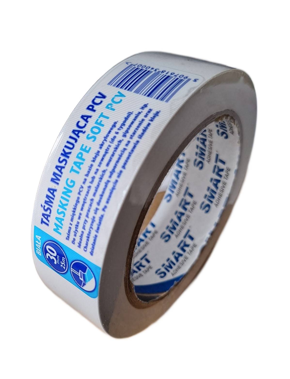 Taśma maskująca biała PVC soft 30mm x 25m - SMART